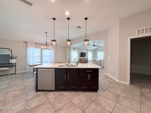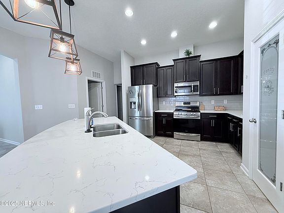 Welcome to Deerfield Preserve! This beautiful home features an open floor plan with three bedrooms and two full bathrooms, all situated within the highly-regarded St. Johns County school district. The interior is open and spacious, benefiting from an abundance of natural light. The gourmet kitchen is a highlight, equipped with a gas range, tall cabinets, a generous kitchen island, and a convenient pantry. The large master bedroom offers serene views of the preserve and includes a step-in shower in its en-suite bathroom. Additionally, the home boasts a two-car garage with durable epoxy coating on the floors.