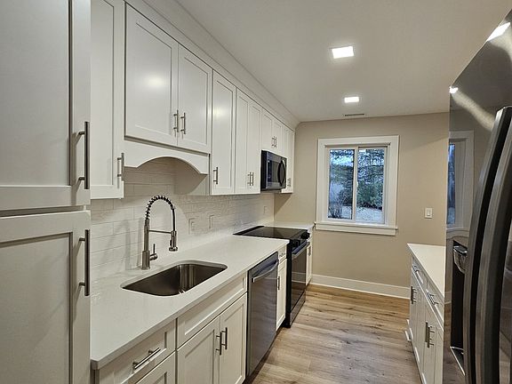 Absolutely Spanking New! New windows, slider, heat pump,duct work, flooring, kitchen, bathrooms, bedrooms, from nuts to bolts. This remodeled unit will be stunning and should be ready by the middle of October 2025. Easy walk from the garage to this Heritage Model and only 6 steps involved.
