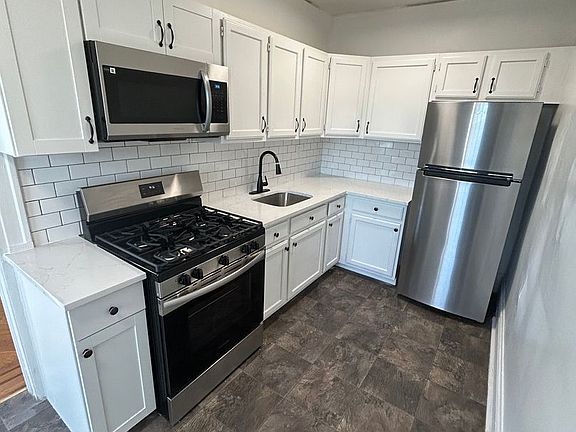 A large and open 1-bedroom apartment in a mid-rise elevator building in downtown Nutley. Beautiful kitchen with white cabinets, quartz countertops, stylish tile flooring, modern stainless steel appliances (including a refrigerator, over the range microwave, and gas range), flush mount lighting, and wooden blinds. Stunning and elegant hardwood floors throughout the apartment.