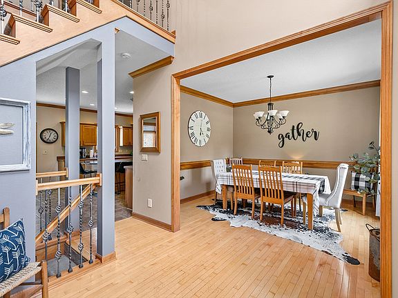 It's your dream home! Everyone is looking for this unicorn - amazing in-town acreage in quiet Mitchellville. Just a short drive to Des Moines and situated on 1.4 acres next to a park. This well-appointed 5-bedroom home has been lovingly cared for and is very spacious. Vaulted ceilings in the foyer set the tone for open spaces. Unique touches make this home special - from the great room built-ins to the patio swings, you will absolutely fall in love. The main floor has maple cabinets and trim, large windows that overlook the sprawling backyard, and a big kitchen for your inner chef. Plenty of spaces to gather, from the eat-in kitchen to the formal dining room, or take the party outside on the deck. Set up a home office or den in the flex space. Half bath off the kitchen with a separate mudroom, plus a drop zone for all the clutter. An open staircase takes you to the second level with a large primary suite and en suite bathroom, complete with a soaker tub, dual vanities, and walk-in shower. An additional three bedrooms share a full bathroom. The third bedroom has an adjoining sitting room or movie room. The lower level is waiting for you to add your finishing touches! In the meantime, a fifth bedroom and 3/4 bathroom round out the home. Walk-out basement offers a patio with swings and a large yard for you to curate.