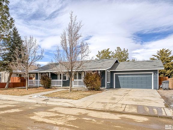 Get chatty ‘bout this home on Kathy Avenue. This house is the talk of the town, or the city since it’s located within Yerington limits. Speak about the 1230 square feet, gloat about the 3 bedrooms, gossip about the 2 bathrooms, gab about the 2-car garage, chew the fat in the kitchen and dining room, prattle under the covered porch, articulate across the 0.15-acre lot, boast on the backyard patio, and praise the price to your agent and discuss a deal now before someone else pronounces this home as pending., This property not only yells curb appeal, but also screams home appeal. Mature trees cast shade above grass lawn. Bright white trim accentuates rich, gray paint. The large, covered front porch faces southwardly and invites enjoyment. The security and entry doors open to an open floor plan featuring dark brown, faux wood vinyl flooring complimenting the soft touch of mauve walls. A ceiling fan can gently push air past a pair of hanging shelves, perfect for staging photos and mementos. Serve meals directly from the kitchen to the dining room combination. The spacious kitchen features an abundance of cabinets and drawers to store multitudes of appliances, utensils, and goods, and ample counter space to mix multi-course meals with the full gambit of included appliances: 4-burner gas range and oven, microwave, refrigerator, dishwasher, and double-bowl sink with disposal. Grow and pick fresh herbs from the garden window and add warmth with décor to the cabinet alcove. The roomy dining area is lit by chandelier. A patio door accesses the back yard to tend to shrimp on the barbie. A set of utility closets service the house by housing the water heater and furnace and the included washer and dryer behind closed closet doors. The hallway opens to the sleeping quarters and bathroom, but first to the coat closet and lastly to the linen closet. A set of temperature controls regulate either the heater or the evaporative cooler. Reside in the master suite and relax in the restful ambiance of the calming field of mauve walls rooted in rich brown, faux wood vinyl flooring. A ceiling fan passes a breeze delicate enough to waft away dandelion seeds. Allow in nourishing light and exchange outside air in through the patio door. Freshen for the day and refreshen for the evening in the ensuite, complete with single vanity sink, medicine cabinet, and shower stall. Dress for work or really dress for a night out in the walk-in closet. The first bedroom stares southwardly through one window, as if a monocle. The second bedroom peers through southward and westward windows, as if bifocals. Search in either of the reach-in closets for clothes hanging from closet rod or folded on built-in shelving. The hallway bathroom with alcove tub and shower combo and single vanity sink accommodates either of these guest bedrooms and guests in other rooms. Add personal touches to this powder room with décor on hanging shelves. Click the opener to automatically open the automated garage door to park up to two vehicles on the epoxied floor. Tube lights brighten the finished walls, and a window lets in more brightness. One operator door opens to the kitchen and another to the back yard. The backyard beckons the best times, and the expansive concrete patio spanning the entire length of the house beckons better times. Take cover under the shade cast by mature trees in the low maintenance yard covered in gravel. Utilize the utility shed to secure equipment and protect patio furniture. Submit a winning offer now and shout with joy when your agent congratulates you once you are on record. This home is 1 of 70 designated lots within the 3-phased Southwood Subdivision. More specifically, the home is situated on Lot 27 of Southwood Subdivision No. II’s 26 lots. CC&R’s govern the subdivision without the oversight and fees of an HOA. For all in-town needs, the property is proximate to Main Street. For all out-of-town destinations, the home is conveniently close to Stat