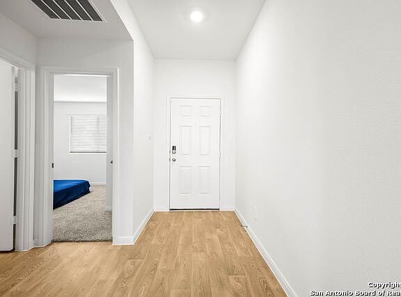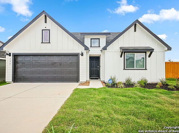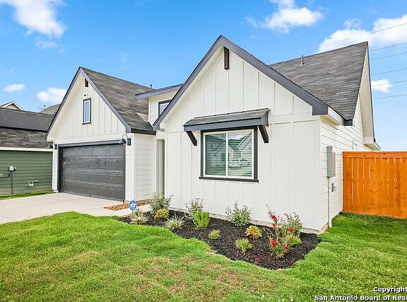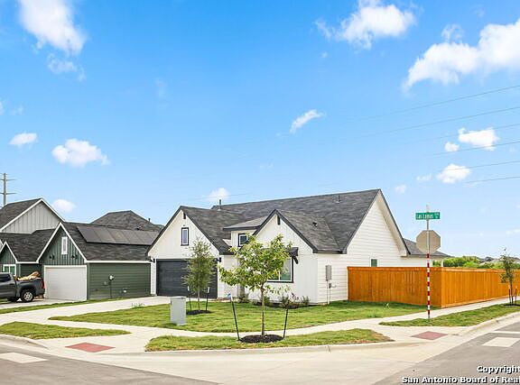 CORNER LOT! The Irvine is one of our one-story floor plans offered at Trace in San Marcos, Texas. This 4-bedroom, 2-bathroom home includes a 2-car garage within its 1,788 square feet of comfortable living space. This home in The Trace feature farmhouse exteriors. Step into this home from the covered entryway and make your way down the hall to the main living space. The open kitchen looks out to your dining area and family room, allowing for conversations to easily flow from all spaces. The L-shaped kitchen includes quartz countertops, a large island with an under mount sink, a corner pantry closet, stainless-steel appliances and 36'' upper cabinets. Off the family room is the primary bedroom, with its own private bathroom. This relaxing bathroom space features a 5' walk in shower, vanity, private toilet area with a door, and an oversized walk-in closet. At the front of the house, you will find bedroom 2 and 3, with the secondary bathroom conveniently located between the rooms. Bathroom 2 includes a tub/shower combination and open shelving for extra storage or decor. Across the foyer and down a short hall is the utility room and bedroom 4. Whether you use these rooms as an office, child's room or guest room, there is enough space for work, sleep and play. The Irvine includes vinyl flooring throughout the common areas of the home, and carpet in the bedrooms. This home includes the Amazon Echo Pop, Front Doorbell, Front Door Deadbolt Lock, Home Hub, Thermostat, Smart Switches. Interior Features: Double Vanity, Pantry, Quartz Counters, Smart Home, Smart Thermostat, Main Level Bedrooms: