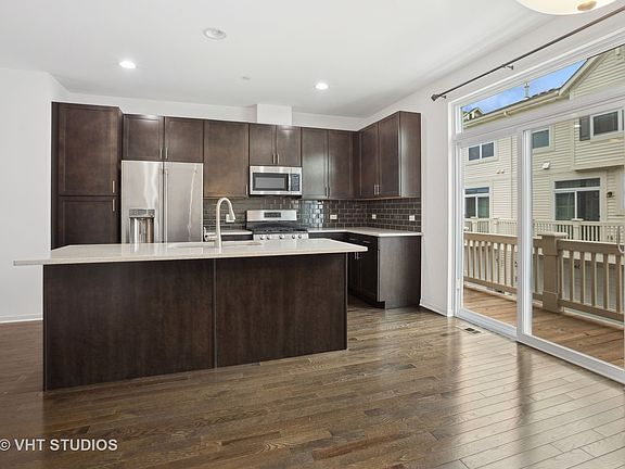 Welcome to this luxurious modern three-level Townhouse offering a sleek and stylish design in a luxurious Lexington Crossing Subdivision. This home features three spacious bedrooms, two full baths and one half bath and an attached two car garage. The main level presents an open-concept living, dinning and kitchen area filled with natural light. The main Level leads you through the Hardwood Floor to a cozy Family Room adorned with a beautiful Gas Fireplace perfect for hosting Dinner or serene evenings at Home. The Kitchen is a Chef's dream, equipped with stainless steel appliances, 42" cabinetry and luxurious quartz countertops. Adjacent to the Kitchen is a charming large size balcony/Deck, ideal for entertaining your guests or for hosting dinner. Upstairs, welcome you to a luxurious large master suite includes a large walk-in closet and a spacious bathroom with double vanities and an upgraded shower. The additional bedrooms are roomy, with plenty of closet space and easy access to a large full bathroom. At the Ground Level, there is an entertainment center area with large screen and speaker. This exceptional home is ideally located near the library, Kimball & Salk Parks, and a shopping center with Jewel, Starbucks and many more to list. Take advantage of nearby walking trails, ball fields and a golf course Easy access to dinning entertainment, fitness center and the forest preserve. You will have most every thing you need within reach. Commuters will appreciate the close proximity to the Metra Station, Woodfield Mall and renowned Schools. O'Hare International Airport is 15-20 minutes away. and Endeavor Health Northwest Community Hospital is only couple of miles. Location Location Location!