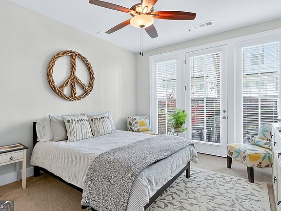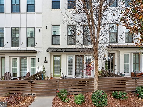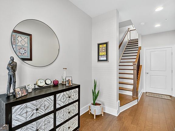This beautifully maintained town home is located in Mason Main, less than 1 mile from downtown Woodstock! The entry level features a spacious, guest retreat with a walk-in closet. On the main level is a spectacular kitchen with shaker, ceiling height cabinets, quartz countertops, stainless steel appliances (LG refrigerator remains), a large breakfast bar/island, pantry, and a separate service bar for entertaining! Also on the main level is a dining area and a large great room. The great room has a wall of windows and a linear fireplace with a wood beam mantle. Upstairs is the primary suite which features his and hers walk-in closets with custom built-ins. The primary bathroom has a double vanity and an oversized tile shower with dual showerheads and a built-in bench. Also on the upper level is another bedroom with its own private bathroom and a walk-in closet. The laundry room is conveniently located upstairs with the primary suite (washer and dryer remain). For entertaining, there are two separate outdoor areas, the deck off of the main level as well as the beautifully landscaped courtyard off of the entry level! 5" hardwood floors throughout the main living areas and the upstairs hallway create a consistent flow enhancing the open floor plan. Mason Main is a vibrant, sidewalk community with streetlights and pocket parks and is conveniently located close to restaurants, shopping and the city amphitheather.