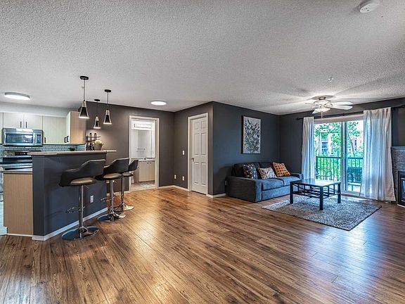 Unique chance! Experience the best of Downtown Airdrie living in this exceptional unit! Boasting 1,055 square feet of meticulously renovated space, this 2nd-floor condo offers an incredible opportunity. From the moment you step inside, you'll be captivated by the abundant natural light streaming through the expansive windows, creating an airy, open feel throughout the day. As one of the largest floor-plans in the entire development, this unit provides generous living and dining areas, seamlessly flowing into a stylish, functional kitchen. Home chefs will appreciate the upgraded wood cabinetry, sleek stainless appliances, and a convenient breakfast bar – perfect for entertaining or casual meals. This thoughtfully designed condo features two spacious bedrooms, including a primary suite with a walk-through closet and a private 3-piece ensuite. A second full 4-piece bathroom and a versatile den (ideal for a home office, gym, or quiet retreat) offer ultimate flexibility.