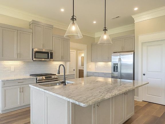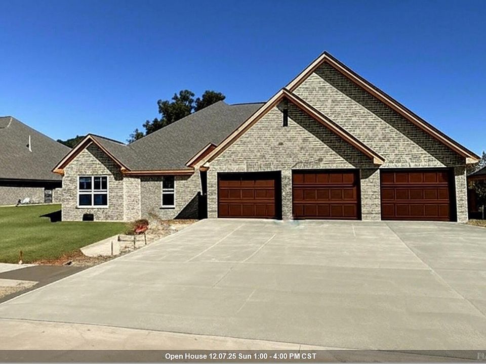 Beautiful new construction in the popular Plantation Pointe neighborhood in Muscle Shoals. 4-bedroom, 3-bath home all on one level, ready early January! Features include three car attached garage, hardwood and tile floors throughout, granite countertops, gas tankless water heater, sprinkler system, and security cameras. The spacious layout offers a primary suite plus an additional bedroom with a private en suite bathroom. Modern comfort and luxurious spa like feel with the elegant colors and fixtures make this home a perfect blend of style, comfort and convenience! Purchaser to verify all information