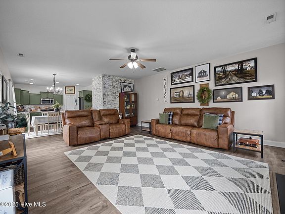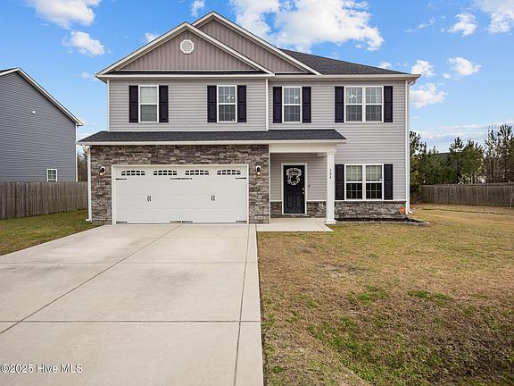 Looking for a home with plenty of space and a large yard? This home has it all! Downstairs gives you a large family room with a gas fireplace open to the kitchen with eat in area. Also a formal dining, an office/flex room and a half bath. Well appointed kitchen includes stainless steel appliances, island, backsplash and a large walk in pantry. Sliding doors open to a nice screened porch overlooking the back yard. Upstairs you'll find 4 bedrooms, all with walk in closets! Bonus room/loft at the top of the stairs. Laundry room is conveniently located upstairs so you don't have to haul laundry up and down the stairs. Large principle bedroom with vaulted ceiling, shiplap accent wall and an amazingly large walk in closet. Principle bath has dual sinks, garden tub, step in shower with glass doors and a water closet. 2nd and 3rd bedrooms are beautifully decorated with board and batten accent walls. Home is located convenient to Swansboro, Jacksonville, Camp Lejeune, Cherry Point MCAS, Emerald Isle, restaurants and shopping.