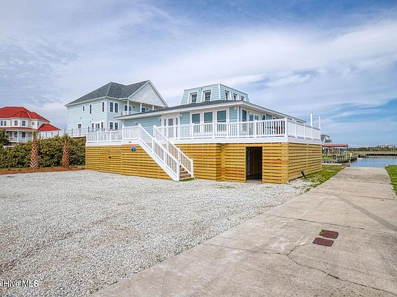 Direct Waterfront with Ocean, Sound & Canal Views! Steps to the sandy beaches of North Topsail. Here is your beautifully remodeled coastal home offering 4 bedrooms, a loft, and 2 full baths. Updated in 2019. The home features an open layout, leather-finished marble countertops, upgraded cabinetry, stainless steel appliances, and LVP flooring throughout. Enjoy large decks, a relaxing hot tub, and water views in every direction.