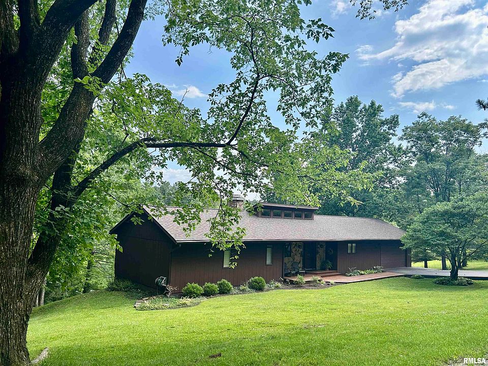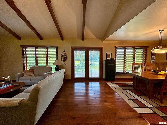 This WATERFRONT home in Union Hill Subdivision was Architect designed and custom built in 1983, has been lovingly maintained and has many recent updates. 2912 sq ft with a view of the lake from almost every room.  The Living Room has vaulted ceilings with cedar beams and clerestory windows.  There is a wood burning fireplace with a new cypress mantle and built in storage.  The entire main floor has new Hickory flooring, wood trim and solid wood 6 panel doors. The Formal Dining Room is open to both the living room and kitchen. The kitchen was remodeled approximately 12 years ago with new birch cabinets, stainless steel appliances, travertine backsplash and Cambria countertops.  There is a walk-in pantry. On the main level is a spacious Primary Bedroom with a remodeled bath and a secondary bedroom.  Downstairs we have 31' x 17' Family Room designed for entertaining or just lots of family fun.  There are two bedrooms and a Laundry/kitchenette.  Outside we have an upper deck and a lower deck which have recently been stained.  Sit for hours and enjoy the peaceful view, watch the wildlife, listen to the birds.  Swim or fish off the rockscaped sand beach. In the Summer you have total privacy. The owner has designed and built a covered "Grill Shack" with a fish cleaning station and an outdoor shower.  The interior of the home was painted in 2024, Exterior stained 2025.  New roof 2022.  The passive solar design supplements the heat in the winter. Leaf filter gutter guards w/ warranty.