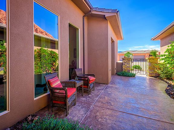 Beautiful rambler surrounded by the spectacular views of the red mountains and red cliffs of Ivins. Nothing left to upgrade inside and out. Floor plan is perfect for family and guests. Casita has wet bar, walk-in travertine shower, double sinks and walk-in closet.