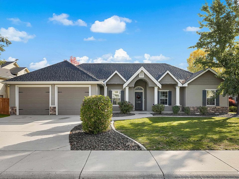Beautifully updated single-level home on a quiet cul-de-sac in Star! Nearly 1,900 sq. ft. with an open layout, gas fireplace, and brand-new stainless steel Frigidaire range and dishwasher (installed Nov 2025). Major system upgrades include a new HVAC, furnace, A/C, and water heater (2025) for total peace of mind. The tandem 3-car garage was converted into a bonus room, ideal for an additional office or gym — sellers are happy to restore it to a full 3-car garage upon request. Spacious fenced yard with mature landscaping and pressurized irrigation. Assumable VA loan at an incredible 2.75% interest rate available for qualified buyers