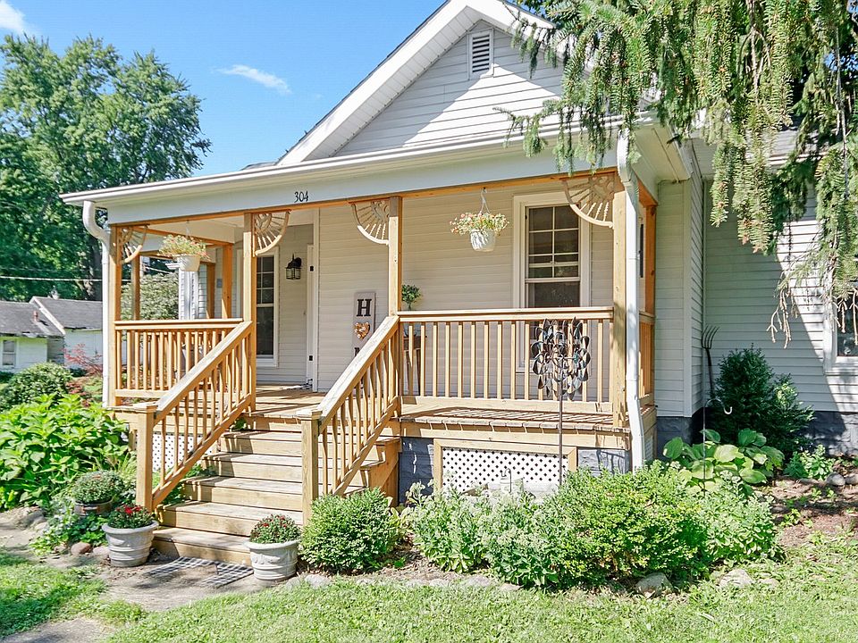 Wow! What a gem with a great combination of charm plus amazing updates. This 1/3 acre lot is in a wonderful location across the street from the park, playground, tennis courts and pool (which has been open this summer). Unbelievable improvements. The kitchen has all been replaced with newer cabinets when first purchased including an island. More recently granite counters, tile back-splash and stainless appliances were added. The new bathroom is fabulous with gorgeous tile floor and shower plus an awesome soaking tub. Many rooms have the original wood floors. You will also appreciate the French doors and built-ins. Within the past 5 years, the house has had a new porch, exterior doors, furnace and water heater. The main floor laundry makes life even more convenient. A portion of the yard is fenced. There is a large outbuilding in addition to the garage. The garage has shed style doors and the outbuilding needs some work.