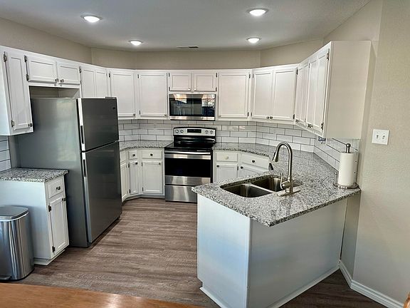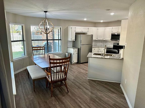 Welcome to a move-in-ready gem in Lubbock. This freshly updated home brings together modern finishes, warm charm, and a layout that just makes sense. Step inside to a bright living room with vaulted ceilings, exposed beams, and a painted brick fireplace. The kitchen is crisp and clean with white cabinets, granite countertops, subway tile, and stainless appliances all overlooking a sunny dining area with bay windows. The primary suite features a beautifully remodeled bathroom with a walk-in shower, soaking tub, and updated tile work. Two additional bedrooms and a second updated bath give you plenty of room for family, guests, or a home office. Out back, you'll find a covered patio and a spacious yard ready for weekend grilling, pets, or playtime. With great curb appeal, recent updates throughout, and nearly 1,600 square feet of functional living, this home is the total package and it's ready for its next chapter.