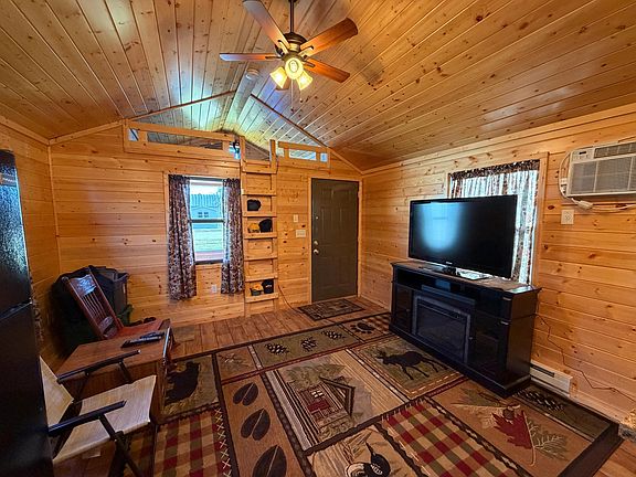 Lets get cozy in this cabin-style manufactured tiny home. Custom built in 2013 with all the amenities you need! Master bedroom large enough to fit a king bed and loft at the front serves as another sleeping quarter. Front covered porch and 10X20 storage shed for all your extras! If you ever wondered about tiny home living, come check this beauty out! Lot rent is $210 and includes water, sewer and garbage. This could be ideal for a lake lot or private lot if you want to move it. Where ever you put it, it will serve as a very economical way of living.