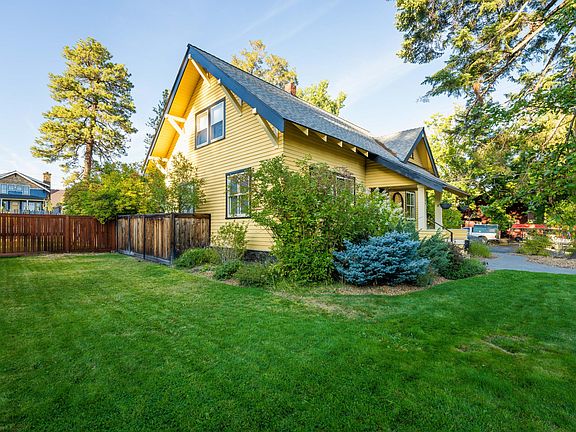 Step into the rich history of Bend with this 1920s Pacific Northwest Craftsman offering a unique blend of classic architecture and modern comfort. As you approach, you'll be captivated by the stunning gables and corbeled roof, with a timeless style. The lush landscaping and herringbone pathway lead you to the front entrance. The moment you step through the door, original hardwood flooring welcomes you. This home has retained its historic charm while seamlessly incorporating modern amenities. Soapstone countertops in the kitchen are a testament to this perfect blend. With 2011 sqft of living space, main-level bedroom, New Central AC, New Furnace, HVAC duct cleaning 2023, New Roof on house and garage, Updated electric, Updated plumbing throughout, Rare downtown full-size two-car garage and driveway, Large corner lot and walking distance to Downtown Bend, Drake Park, the Old Mill District, and the Deschutes River.