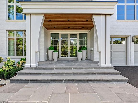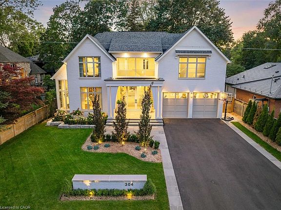 Welcome to 304 Pomona Avenue, a truly magnificent newly built home in Burlington’s highly coveted Roseland community. Step inside and you’re greeted by an incredible hand-carved plaster staircase rising through all three levels that’s perfectly paired with rift-cut white oak herringbone floors that set an elevated tone. A formal dining room makes a statement with decorative ceiling beams, a glass wine display, and a marble wet bar. The private library draws you in, finished with oak panelled walls and a reading nook with floor-to-ceiling corner windows that flood the room with natural light. The living room completes the main level’s gathering spaces with its plaster fireplace, oak shelving with integrated lighting, and full in-ceiling speakers. At the heart of the home, the kitchen offers a large custom plaster hood, oversized waterfall island, porcelain counters, and top-tier appliances including a 60” Wolf double oven, Sub-Zero fridge and freezer, and Bosch dishwasher. Pantry storage with reeded glass cabinetry and a walk-through servery extends the workspace. Just beyond, the breakfast area opens to a beautiful and serene covered terrace with a built-in BBQ, outdoor fridge, fireplace, and cedar-lined ceiling—overlooking the saltwater pool and landscaped gardens. Upstairs, four bedrooms each include private ensuites. The primary suite features a spacious walk-in closet and a spa-like bath with dual vanities, soaker tub, heated floors, and oversized shower. A full laundry room with custom cabinetry completes this level. The lower level expands the living space with a second kitchen, home theatre, gym, fifth bedroom, full bath, and radiant heated floors. Outside, stone patios, mature landscaping, irrigation, and a hydrangea wall create a welcoming backdrop. With 4+1 bedrooms, 7 bathrooms, and over 6,000 sq. ft. of living space, this Roseland residence combines thoughtful design with everyday comfort. Move in and enjoy!