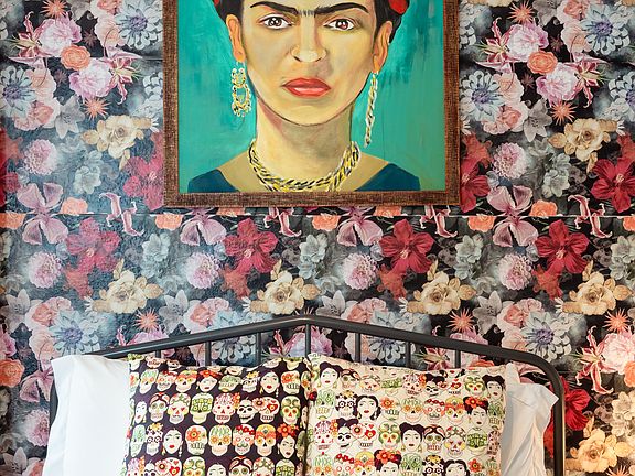 Casa Khalo Studio takes care of your every requirement, providing a fully stocked coffee bar, linens, towels, and a dedicated work space with a desk and chair. The sleeping arrangements include a comfortable queen bed with a nightstand, a twin day bed with a roll-out trundle bed, and ample closet space for storage.