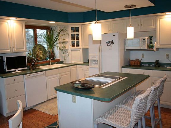Beautiful, well kept, 1.5 story home. 3 or 4 bedrooms, 2.5 baths, family room w/windows galore, rec room in basement and storage galore. Hot tub and in-ground pool. Large deck. Updates include new: pool liner, hot tub, pool pumps, water softener, faucets in master bath, chimney cover, painted deck, carpet in upstairs bedrooms, and redecorated kitchen. ADT security. Surround sound in family room. Shed has electric & GFI ground. Outdoor external speaker system. Back up for sump pump if electric is out.