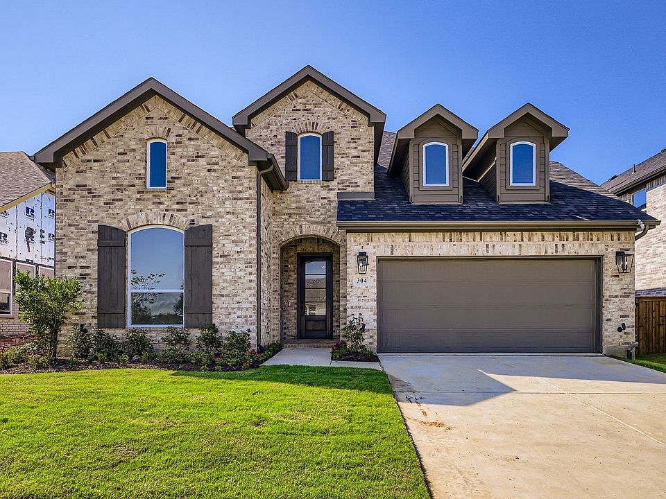 Stunning 2 story, north facing home with 4 bedrooms, 3 full baths, 1 half bath, study, oversized outdoor living area, game room, media room, and 2-car garage. This home features two bedrooms on the first floor and two bedrooms upstairs, which is a perfect arrangement for all members of the family. As you enter you'll be amazed by the 18-foot ceilings which carry through to the family room where the stacked double set of windows bathes the area in natural light. This home features a “chef's kitchen” with a walk-in pantry, extensive countertops, and a window for extra light. The 12X9 outdoor living area is an included feature for this plan and will extend your living space dramatically. The game room, which is open to below is perfect for entertaining and features a closet for games and additional storage. The upstairs bedrooms can be a “quiet” zone as they are separated from the entertainment area. The garage features extra storage. To round out the rooms in this plan, you can enjoy working from home or reading a book in the beautiful study. Available in July 2025 (North Facing)