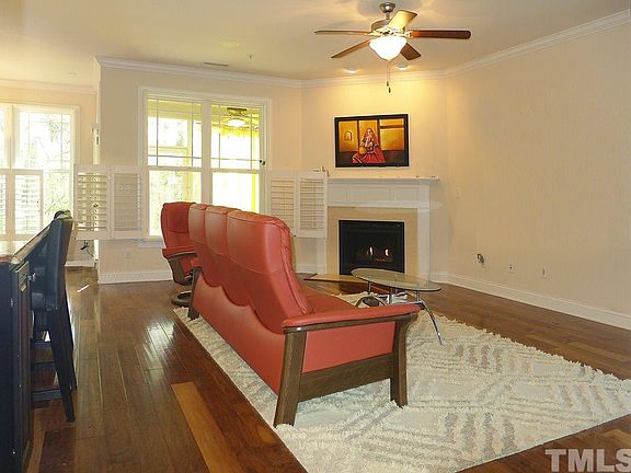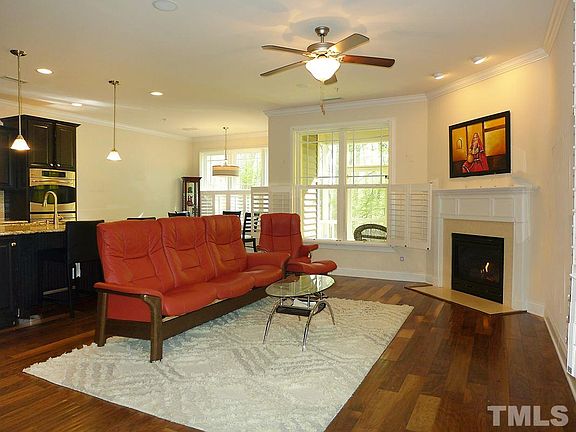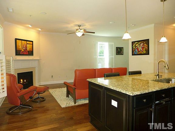 End unit. Hardwoods on 1st. Open floor plan - living room has gas-log fireplace, fan, open to kitchen with granite counter tops, tile backsplash, center island, breakfast bar, stainless appliances, pantry, open to dining space. Bedrooms have carpet. 3 bedrooms on 2nd. Master has trey ceiling, bath with 2-sink vanity, soaker tub, tile shower, walk in closet, tile. 2nd bath, laundry with hook-ups on 2nd. 4th bedroom on 3rd wired for home theater, has full bath, attic storage. Screened porch. 2-car garage.