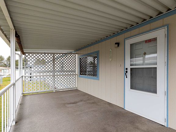 Welcome to this meticulously maintained 1991 single-wide manufactured home in the desirable Birch Tree Manor 55+ community, located in Spokane Valley. This home features 2 bedrooms and a spacious bathroom recently updated with beautiful new tile. It includes all appliances, and a heat pump installed in 2013, providing energy-efficient heating and cooling year-round. Major exterior upgrades were completed in 2016, including a new roof, gutters, fascia, and siding, with a fresh coat of exterior paint applied just last year. Outside enjoy a covered deck, a covered carport, a storage shed, and a sprinkler system.The affordable lot rent includes water, sewer, street snow removal, and summer debris dumpsters, making life in this fantastic community even more convenient.