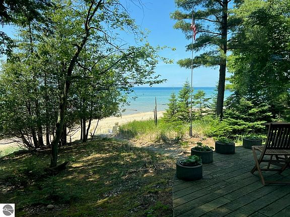 Experience Unrivaled Beachfront Living! Prepare to be amazed by this gorgeous beachfront property offering phenomenal beach access and spectacular sunsets right from your doorstep. This isn't just a house; it's the perfect beach house you've been dreaming of. This home offers a comfortable 2-bedroom layout, complemented by a versatile upper loft that can easily serve as a third bedroom, providing flexible living arrangements. Lovingly maintained, the home welcomes you with an open, airy kitchen featuring newer appliances. The inviting living room is a true highlight, boasting a stunning rock ledge fireplace and warm wood flooring. But the real showstopper is the expansive wall of windows, providing wide-open, breathtaking views of Grand Traverse Bay that will captivate you every single day. Beyond the main living areas, you'll discover your new favorite spot: a delightful 3-season room. This added living space is an idyllic retreat, offering the perfect vantage point to soak in the serene beauty of the bay, no matter the weather. Imagine waking up to the sound of the waves and ending your day with a front-row seat to nature's most dazzling display. This is more than a home; it's a lifestyle.
