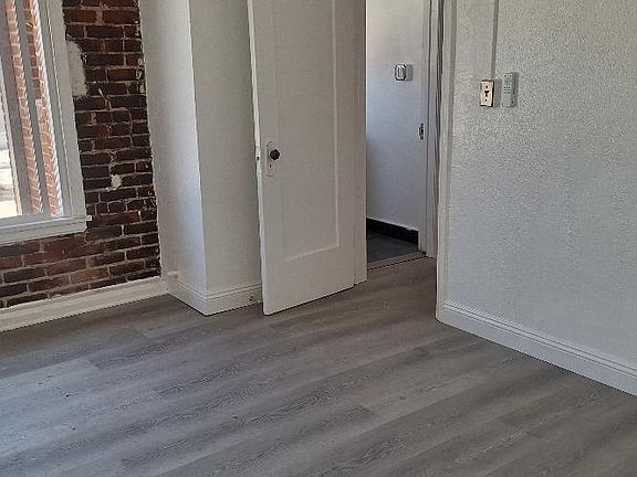 Brick wallTop floor with viewsWood floorsWalk-in closetLaundry room