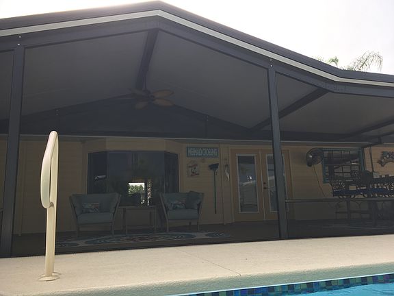 Stunning 2 Bedroom/2 Bath Home with resort style pool , tile waterfall, and professional landscaping. The remodeled kitchen has stainless steel appliances, corian countertops, built-in desk and custom cabinetry. The kitchen overlooks the dining area and large open living area. The bay window offers a spectacular view of the pool and patio area. Master suite (13x20) is the epitome of luxury with 1 wall of closets, walk-in closet and french doors leading to front porch. The bathrooms are updated- all new tile. The 2nd bedroom is very spacious (13'10"x16) with on suite bathroom and walk-in closet. The bathroom opens to the pool and patio area for convenience. The Screened Patio (54x14) has an insulated roof and vaulted ceiling .The salt-water pool is 2018, has baja deck, privacy fence and beautiful tropical foliage. The outdoor area has shuffleboard court and horseshoes. The property offers 2 large 2 car garages (one attached) offering plenty of room for cars, toys and ample storage. The ac was replaced in 2015, upgraded metal roof in 2018, Miami-Dade impact single-hung windows in 2019. Floraram Sod with sprinkler system on separate well. Property is immaculate and move-in-ready. It is a recreational paradise! Great for entertaining or family fun. Don't miss this great home!