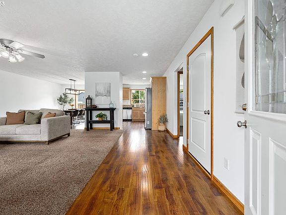 Step into a home that is designed for ease of living! This practical and inviting three-bedroom, two-bathroom home is the perfect blend of both comfort and functionality. The primary suite is spacious, featuring a walk-in closet and a bathroom with double sinks convenient for daily routines.The kitchen is well-equipped with stainless steel appliances, including a gas range, and has a handy pantry for extra storage. The eating bar offers a casual dining option, perfect for quick meals.The fenced backyard is a versatile outdoor space featuring an exposed aggregate patio, a fire pit, and a storage shed?great for entertaining or simple relaxation. With freshly painted interiors and exteriors, plus a covered front porch, this home has curb appeal that is welcoming yet understated.