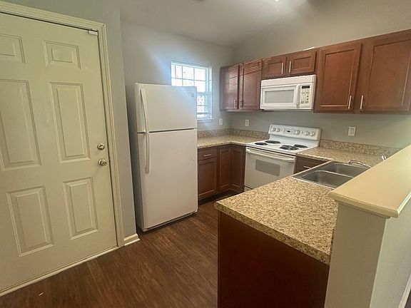 2 bedroom, 2 bath townhome in McClelland Townhomes! Conveniently located, close to I-40, close to area beaches, schools, and nearby shopping. Laminate flooring throughout living area, new carpet in bedrooms, vaulted ceilings, primary bedroom has ensuite bath, small fenced area in back, extra storage, includes washer and dryer!