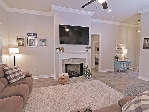 Welcome home to space, style, and comfort in this beautifully-designed traditional home that checks all the boxes. The living room, kitchen and dining area feature soaring 12-foot ceilings, ceramic tile flooring, heavy molding, and a warm gas log fireplace with granite facing - perfect for everyday living and entertaining. A nice-sized foyer makes a great first impression, while the dedicated office space adds flexibility for today’s lifestyle. The kitchen shines with a granite island and sink, stainless five-burner gas stove/oven, microwave, dishwasher, walk-in pantry, and plenty of cabinets. Just off the kitchen, you’ll find a handy landing area with a built-in desk and a large utility room big enough for a second fridge or freezer. The huge master suite is a true retreat with a tray ceiling, his and her walk-in closets, garden tub, separate walk-in shower, and dual granite vanity. Two spacious bedrooms feature 9-foot ceilings and carpet, and the hall bath includes a granite countertop. Outside, enjoy a covered porch, covered patio, double-car garage, and added gutters for peace of mind. This home offers comfort, function, and timeless appeal - all in one inviting package. Call your favorite REALTOR and schedule your private tour today!