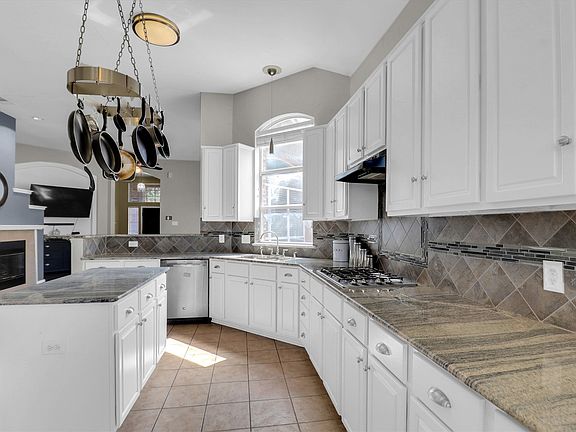 Outstanding 1-story home with luxury features such as hand-scraped hardwood floors, archways, and a see-through fireplace between the living room and dining room. The spacious gourmet kitchen is open to the family room and features custom granite counters, breakfast bar, island with overhead pot rack, stainless steel appliances, gas cooktop, and pantry. The oversized (19' x 13') master suite is separate from the other bedrooms for greater privacy. The master bath features a jacuzzi tub, separate shower, walk-in closet and 2 separate vanities. The second living area is outside the 2 other bedrooms making a perfect retreat. Would also make a great game room or media room. The backyard is great for entertaining - it features a board-on-board fence for privacy and a large flagstone patio with a water feature. This home is part of the Stonebridge master-planned community with numerous amenities including golf, tennis & pickleball courts, skate park, beach club, aquatic center, many parks & playgrounds, and over 20 miles of hike and bike trails. This home is only .25 miles from Eddins Elementary and Falcon Creek Park.