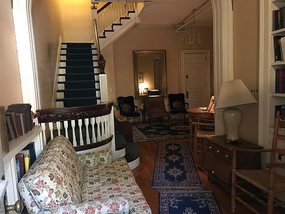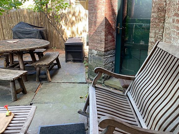 Short term or long term UNIQUE FURNISHED entire second floor rental in Center Square historic brownstone with two bedrooms in quiet building with two fireplaces, two bay windows and six burner gas stove with granite countertops and Wood mode cabinets. Chef's kitchen with large dining area. Master bedroom with queen sleigh bed with bay window overlooking iron gated garden backyard of flowering trees. High ceilings with crown molding throughout. Patio with grill and picnic table available for your enjoyment. Tile bathroom with Kohler fixtures. Laundry in unit. Computer workspace and stationary bike. Walking distance to restaurants, museums, Concourse, library, public transportation, State Capitol, Legislative Office Building and Washington Park. Near to Albany Medical Center, Albany Law School, College of St. Rose, SUNY Albany. Off street parking included. Require Zillow application prior to viewing. Please do not request a view until we have received your application. Owner pays for heat, hot water, electric, laundry, high speed internet. Month to month agreement. Most suitable for one or two. No pets or smoking.