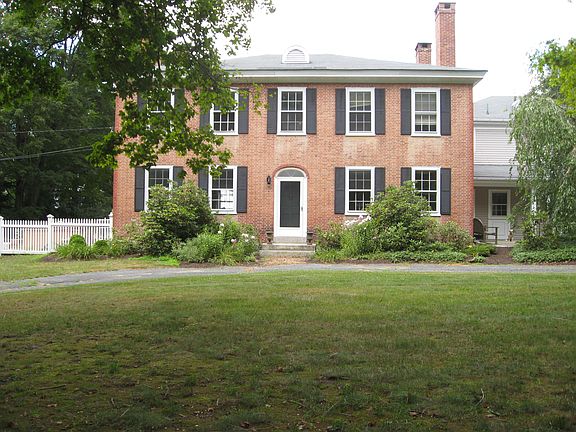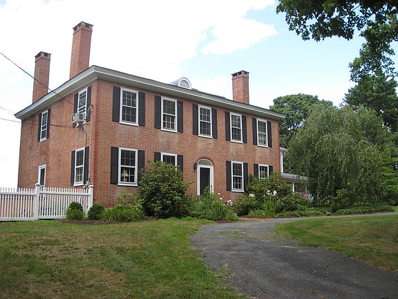 BOLTON Circa 1800, Federal style 4 chimney, hip roof, brick residence, graced with central connecting front & back staircases, period detail, high ceilings, 8 fireplaces, pine floors, deep set windows. Newer wing with sunny kitchen, informal dining, 2 car garage adjoins a workshop room, and side entrance portico. 13 rooms plus 3 full baths. Entertainment sized patio, Gunite pool, gardens and sweeping lawns. Scenic distant views over abutting Bolton Flats Conservation. $648,000