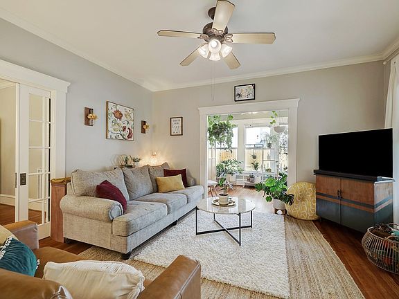 Craftsman styleHardwood floorsTree lined streetLarge windowsAutomatic driveway gate