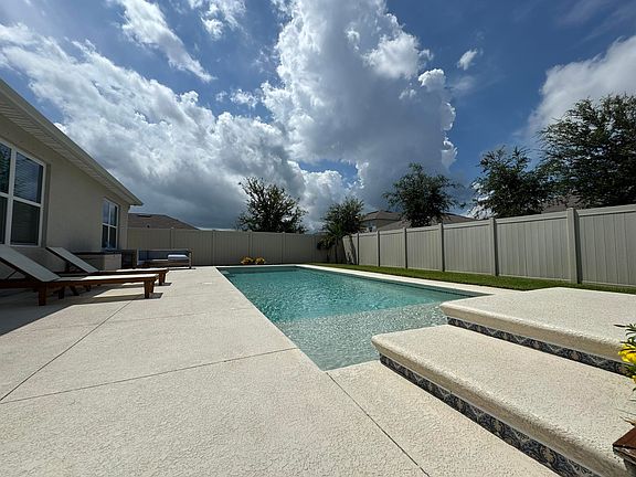 Fully Fenced; Lawn/Pool Included; No Application Fee; Pet friendly ; 1 year lease minimum; Covered lanai; Open kitchen; Breakfast bar & pantry; Split floor plan; Two car garage; W/D included; Fully fenced yard;