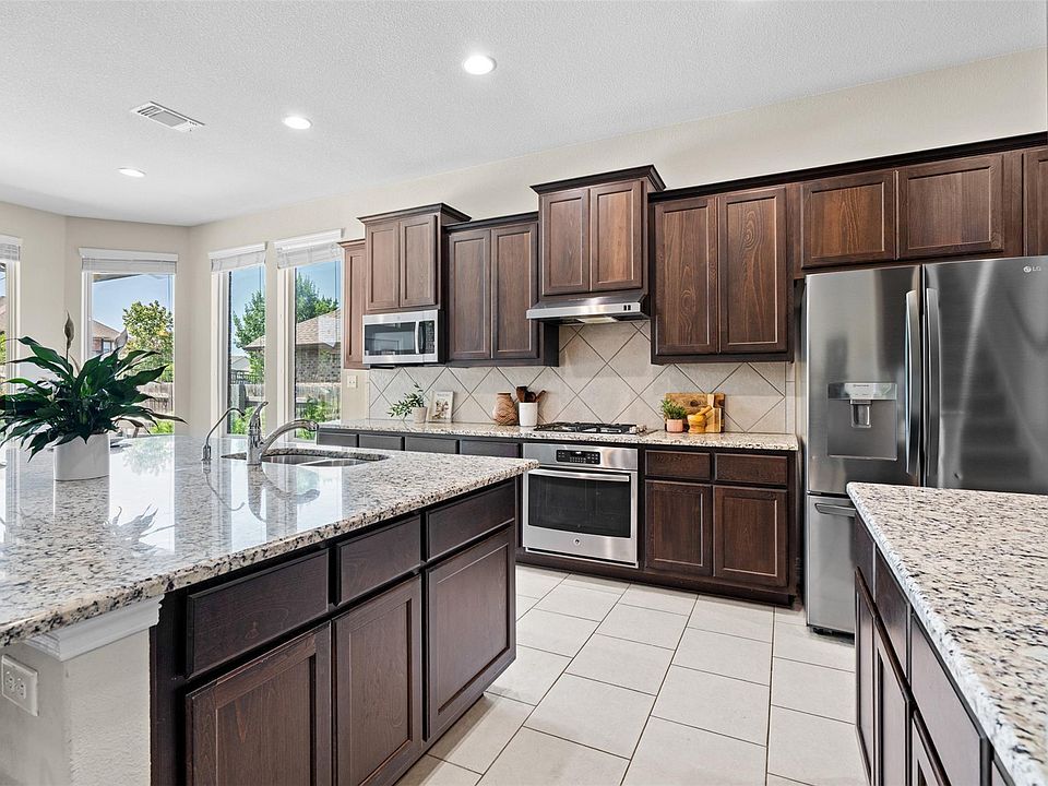 Welcome to 304 Tangerine Drive in the heart of Buda’s premier resort-style community, Sunfield! This thoughtfully designed two-story home offers 4 bedrooms, 3 baths, and over 2,600 sq. ft. of open-concept living — with three bedrooms conveniently located downstairs and a private upstairs retreat with game room, loft, full bath, and additional bedroom. At the center of the home, the kitchen shines with an oversized granite island, stainless steel appliances, and seamless flow into the dining and living areas, making everyday life and entertaining a breeze. Step outside to your personal backyard oasis — a sparkling inground pool with waterfall, upgraded equipment for easy maintenance, and a large covered patio perfect for lazy afternoons or lively gatherings. The primary suite offers double vanities, an oval soaking tub, walk-in shower, and generous closet. With the elementary school just a short walk away, this is an ideal spot for families who want convenience and community. For those looking to downsize or enjoy the “pool life,” the main level provides nearly all your daily living needs with guest space upstairs for when company comes. Living in Sunfield means enjoying incredible amenities — a lazy river, multiple pools, miles of hike-and-bike trails, and even dog parks with obstacle courses. 304 Tangerine blends luxury, comfort, and Hill Country charm, all just minutes from Austin.