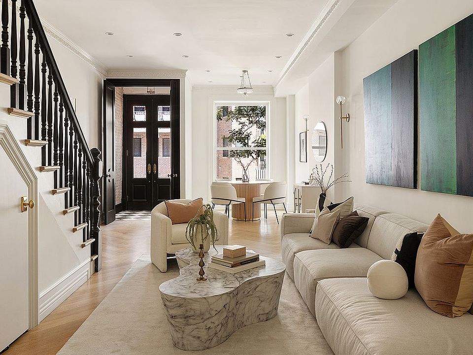 Spanning four stories, this exquisite residence features an expansive owner’s triplex with 4 bedrooms and 3.5 baths, along with a separate 1-bedroom, 1-bath garden-level apartment—perfect for rental income or guest accommodations. Every inch of The Harlem Belle has been thoughtfully curated to showcase superior craftsmanship and elevated design. Vintage touches, such as a 1940s–1950s crystal chandelier and late-1920s brass sconces, add warmth and character, while restored original details preserve the home’s storied charm.