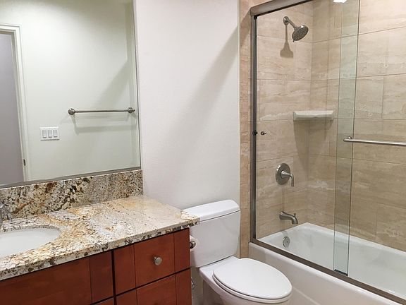 Sorry, no pets allowed, and there is a 3-person maximum occupancy. This a fully remodeled 2 bedroom, 1 bathroom house on a quiet residential street in Alhambra. Absolutely everything is brand new. Every floor, wall, ceiling, countertop, door, window, faucet, light fixture is brand new -- there is not a single inch inside that is not brand new. Starting with the electrical wiring all the way through to the custom granite-top kitchen, this is practically a brand new house. The remodeled items include: Custom-designed solid wood kitchen cabinets Granite countertops Stainless steel stove/oven, hood, and dishwasher Stainless steel sink with brushed nickel faucet Recessed lighting Porcelain tile floors in the kitchen and bath Washer/dryer hookups Central air and heat Double-paned insulated windows Vertical shades and curtains Bath vanity with granite countertop Bath faucet and fixture Bathtub, toilet, and bath faucet Hardwood floors in living room, hall, and bedrooms Mirrored closets in bedrooms Custom refinished front door and all interior doors Electrical panel and all wiring, outlets, and switches Porcelain tile on porch and exterior entrance Exterior paint The wood-floored living room and dining area flow nicely into a beautiful and spacious kitchen. Large, energy-efficient windows surround you allowing views and ambient light from all four directions. Convenient washer/dryer hookups are available behind the kitchen. High ceilings and recessed lighting give the home a modern, yet cozy feel. Special touches like closet lighting and built-in refrgerator water access are a nice convenience, and the energy-efficient central air & heat system will keep you comfortable. There is rear-door access to two parking spaces, one of which is a detached garage. Above the detached garage at the back of the property is a separate apartment unit. Aside from the actual house, the next best thing about this property is it's location. It's on a very nice, residential street, and close to all the dining and shopping options Alhambra has to offer. The rent is $2195 and includes water, trash, and gardening. The security deposit is $2000. If you'd like to see the house, please call (626) 665-4336 and leave a message. Someone will call you back as soon as possible to make an appointment. Thank you. Sorry, no pets allowed. Water, trash, gardening included