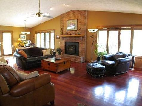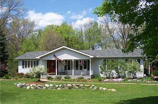 Wow - very deceiving ranch home! What appears to be your ordinary ranch from the outside will exceed your expectations inside! You'll also be amazed with the location and get the best of two worlds: 1.5 acres in the country with wildlife, privacy and even a fire pit, yet minutes away from Meridian Mall, restaurants, recreation and schools! The home features a split-master, open floor plan with over 3,250 square feet of living space including lower level finished areas. As you enter the front door, you'll be greeted by a large living room complete with a grand piano (seller will consider selling) and hardwood flooring! The master suite with cathedral ceiling, master bath and walk-in closet occupy the east part of the home. Down the hall off the living room are the remaining three bedrooms all with hardwood) and the main bath. More surprises come through the spacious kitchen area with eat-up bar and opens to a stunning great room with expansive brick fireplace and Brazilian cherry flooring! French doors open to a wrap-around deck and features windows overlooking the large backyard with pond & wetland area (owned by township) ideal for kayaking! Lower level has large family and rec room areas as well as tons of storage! A little piece of heaven waiting just for you -- call for your showing today!