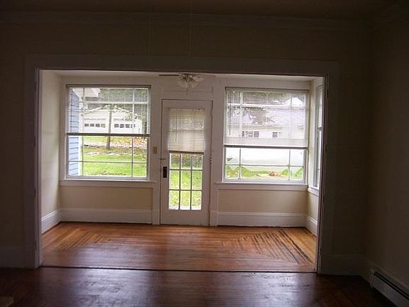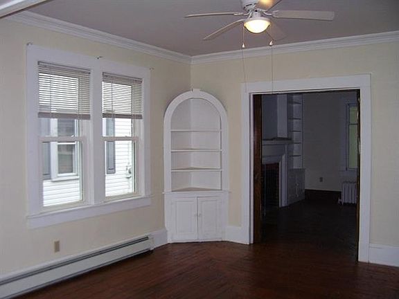 This historic, quality built home, known as the Jameison House, boasts original oak hardwood floors, pocket doors and trim. Large fully applianced kitchen has been completely remodeled. Sunroom area on both floors. Fireplace w/built-ins. Spacious enclosed front porch. Nice walk-up attic provides lots of storage. Updates include breaker electric, windows(90%),fresh paint and newer boiler.Nice double lot in quiet neighborhood has off street parking.