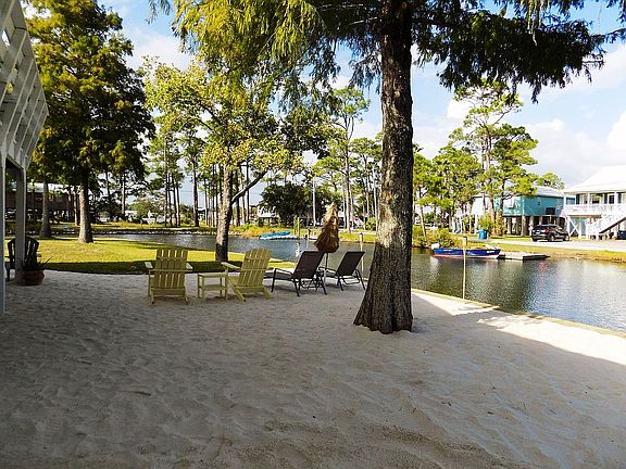 WATERFRONT BEACH BUNGALOW in the heart of Gulf Shores. Charming 2 bedroom 3 bath raised ranch on oversized canal lot with 225' of waterfrontage on 2 sides of the property & leads out to beautiful Little Lagoon. Easy walking distance to the beach, Hangout & Gulf Pavillion. Designed for indoor & outdoor living, the outside includes a newly refurbished seawall, a lower level lounge with refreshment bar, a tv watching area & dining space that leads to waterside sandy beach area perfect for entertaining. Also conveniently located on the lower level is the 3rd bath that consists of a private powder bath + outdoor shower. Inside features an open floor plan offering a spacious great room with vaulted ceiling & large palladian window and seamlessly flows into dining room & kitchen area. Kitchen remodel includes Maytag appliances, butcher block countertops, tile backsplash, a work island & breakfast bar. Primary bedroom adjoins a bath with jetted tub & double vanity. 2nd bath has walk-in shower and laundry area with stacked washer/dryer. Both bedrooms lead out to the large upper level deck providing the perfect place for your morning coffee and enjoy the view. Renovated & adorable. Hurricane shutters. Metal roof. Tons of storage for all your beach toys, tools etc. NO HOA!! Plenty of room to park the Boat/RV. RARE OPPORTUNITY TO OWN AN AFFORDABLE WATERFRONT PROPERTY IN A PRIME LOCATION. Shown by appt only. Buyer agents welcome to show.