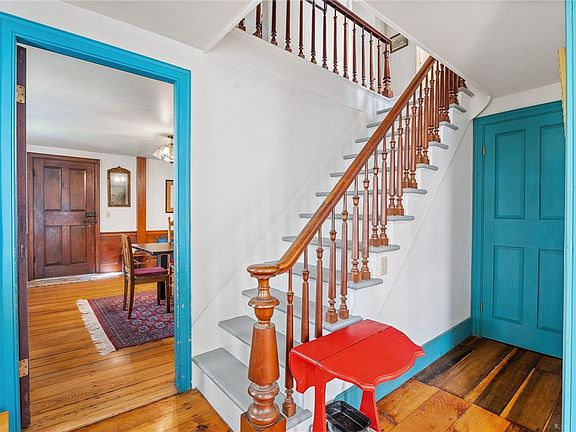 Nestled on a beautiful corner lot walking distance to the Black Diamond Trail, Taughannock Falls State Park and just a short commute to the Village of Trumansburg, this 2 acre parcel offers the perfect amount of space to make all your homesteading dreams come true. Enter the home through an attached 2 car garage into the welcoming entry way that opens up to the back patio overlooking the sprawling green lawn. Inside, the fully equipped kitchen offers plenty of counter and cabinet space with both a breakfast nook and a formal dining creating room to move and hosting gatherings easy. The main level also includes the convenience of a half bath, office or reading space, and a warm, inviting living room with a cozy gas fireplace and plenty of windows to let in natural light. Upstairs, you'll find four comfortable bedrooms and a full bath, notice the entire home is accented by wide plank wood floors throughout. Outside the property features a chicken coop, garden area, and a barn for extra storage, giving you all the space you need for hobbies or homesteading.