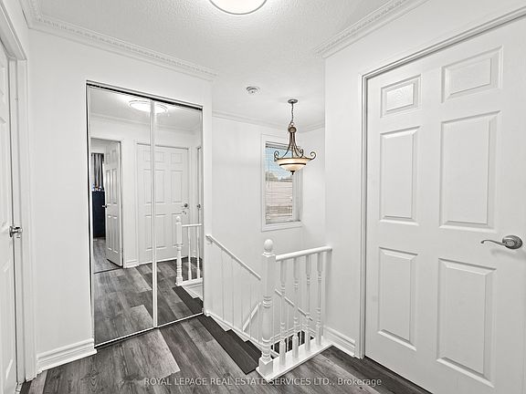 Discover comfortable, stylish living in this sunlit 2 bed, 1 bath condo townhouse in the heart of Applewood. With over 1000 sq ft of well laid out space. The main level welcomes you with an open concept living/dining area, complete with crown moulding, pot lighting, and a walk out to a south facing balcony that floods the space with natural light. You'll love the kitchen centre island, ideal for meal prep or casual gatherings, while upstairs features two good sized bedrooms with generous closets and large picture windows. The bathroom has been tastefully updated, and finishing touches like fresh paint, vinyl plank flooring, and hardwood steps make this home move in ready.Step outside and enjoy a fenced front patio, perfect for morning coffee or a small garden. The building offers visitor parking, and the maintenance fees include water, building insurance, and common elements.Location is a big win: you're just steps from transit (with direct access to subway connections), and a short drive from high-traffic arteries like Hwy 427, QEW, and 403. Schools, parks, shopping, and amenities are all within easy reach.Whether you're a first-time buyer, down-sizer, or investor, this unit delivers both style and convenience in a mature, well connected neighbourhood. Welcome home!