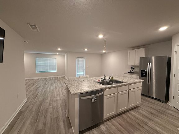Large island barFront porchCovered back porchRoomy dining areaStainless appliances