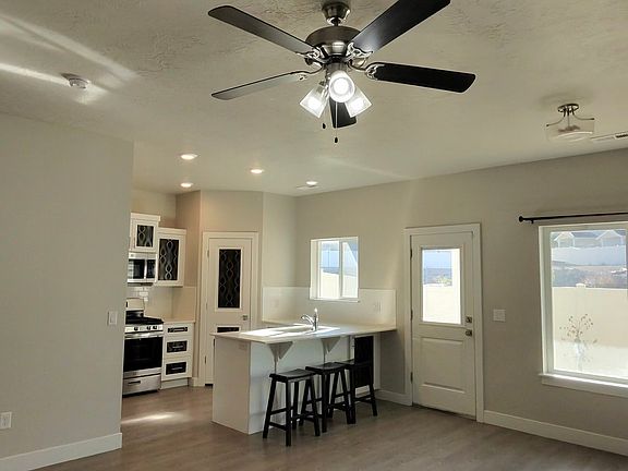 Move in ready! All appliances included! Enjoy the perfect balance of modern design and everyday convenience in this 3-bedroom, 2.5-bath townhouse. The open concept living space welcomes you with 9-foot ceilings, luxury vinyl plank flooring, and is highlighted by a stylish shiplap accent wall. The kitchen features quartz countertops, stainless steel appliances, gas range, subway tile backsplash, and soft-close cabinetry. Upstairs, the spacious master suite provides a private retreat with dual sinks, large shower and a walk-in closet. The two additional bedrooms are filled with natural light and views of the park located directly behind the townhome. Living here provides easy access to I-15, making your errands and commute a breeze. Come and see it today!