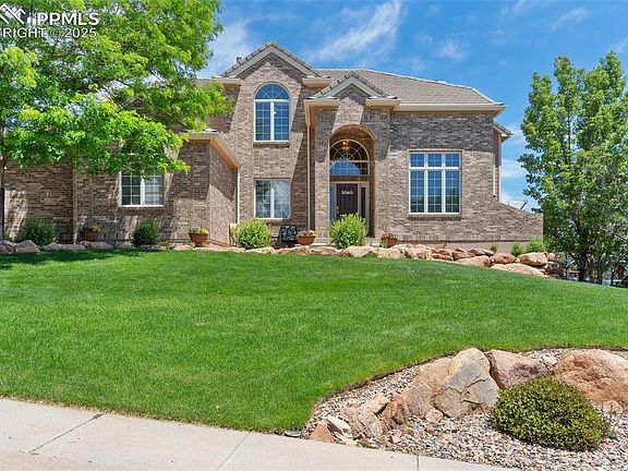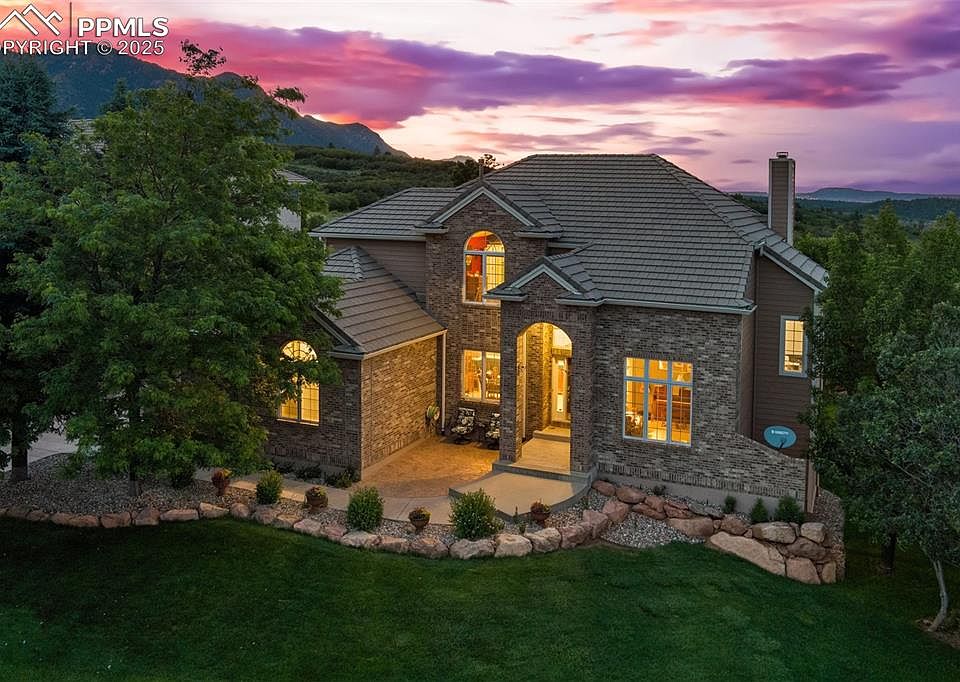 Your Dream Home Awaits! Nestled in the highly sought-after Peregrine neighborhood in NW Colorado Springs, this extraordinary 6-bedroom, 5-bath residence redefines luxury living with its sweeping mountain and city views. Spanning 4,507 square feet, the home perfectly balances elegance and functionality in one of Academy District 20’s most desirable communities. Freshly painted throughout, this home welcomes you with soaring ceilings, hardwood floors, and a dramatic staircase. The spacious dining and living rooms set the tone for gatherings, while the sun-filled family room (don’t miss the sizable hidden storage!) impresses with oversized windows, a cozy gas fireplace, and captivating views of the city, mountains and Air Force Academy. The kitchen is a true entertainer’s delight, offering stone countertops, sleek cabinetry, and an island designed for conversation and function. The floor plan shines with thoughtful touches, including a private office just off the staircase and expansive windows framing views in every direction. Upstairs, the primary suite is a retreat with breathtaking panoramas, a spa-like 5-piece en suite, and walk-in closet. A junior primary with updated bath, two additional bedrooms with a shared Jack & Jill bath, plus tasteful updates throughout elevate the home. The walk-out basement offers two more bedrooms, a full bath, and a large recreation room ready for movie nights, workouts, or hosting guests. Outside, a newer 40x20 composite deck provides the perfect vantage point for enjoying both mountain views and city lights. The lot is a rare find, backing to the AFA for maximum privacy while offering usable yard space for play, gardening, or relaxation. Additional features include updated light fixtures, central AC, security system, and oversized 3-car garage with storage. With neighborhood parks, ASD20 schools, and a prime Peregrine location, this home is more than a place to live—it’s a lifestyle. Don’t miss the chance to make it yours!
