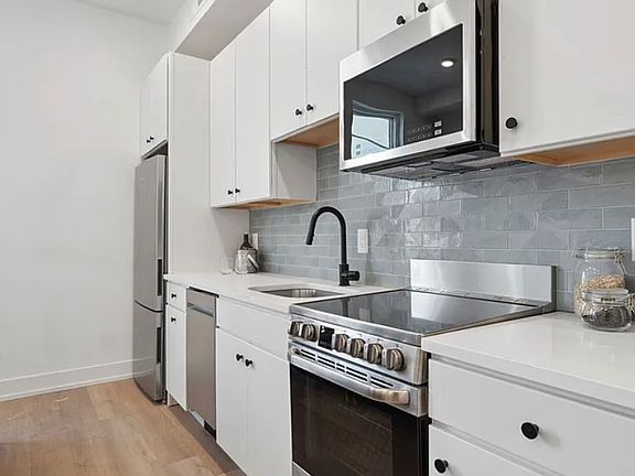 LEASE SPECIAL 1 month FREE on a 13-month lease!! Welcome to Theatre Place, brand-new luxury apartment living at 3037 Richmond Street #401. This pet-friendly community offers elevator service, a fitness center, rooftop deck with stunning skyline views, in-unit laundry, optional parking, and secure keyless entry. Inside, you'll find a modern kitchen with quartz countertops, stainless steel appliances, white cabinetry, and a tile backsplash, along with a spacious bathroom featuring sleek finishes and ample storage. Designed with a clean, minimal look and stylish architectural details, each home offers an open, light-filled layout perfect for modern living. Conveniently located near public transportation, Theatre Place provides easy access to Center City, University City, and everything Philadelphia has to offer. Move-in requires first, last, and security. Tenant pays electric and a $45 monthly water fee. Schedule your tour today and make Theatre Place your new home!