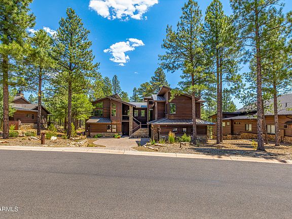 Nestled within the prestigious Pine Canyon community, this exquisite 3,832 sq ft single-family residence offers the perfect blend of refined elegance and natural beauty. Featuring 3 bedrooms, 4.5 baths, two primary suites, a dedicated den/office, and a 3-car garage, this home backs directly to the Coconino National Forest, providing unmatched privacy and year-round scenery. Step inside to an open, airy floor plan with soaring ceilings, expansive windows framing forest views, and a striking floor-to-ceiling fireplace. The chef's kitchen boasts premium appliances, open shelving, a large center island, and a walk-in pantry concealed behind a custom barn doorideal for both everyday living and entertaining.