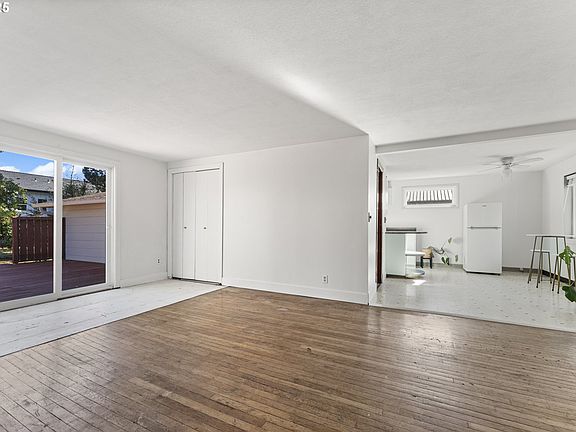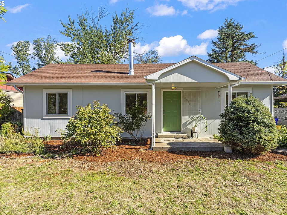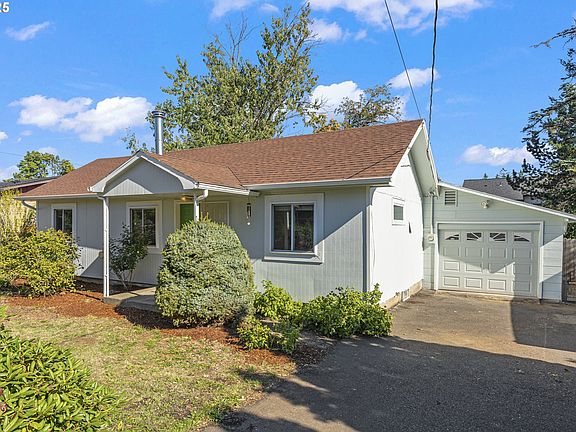 Step into this welcoming single-level home where comfort and functionality come together with ease! The spacious open-concept living area invites you in with its natural light and cozy gas fireplace. Freshly painted inside and out, this home features two comfortable bedrooms and one bath. The kitchen, with period details, flows seamlessly into the living and dining spaces, while patio doors open to a large deck overlooking the expansive backyard—a gardener’s dream—complete with fruit trees, blueberry bushes, and grapevines ready for harvest. The oversized garage provides ample space for storage, a workshop, or the potential to create a future studio. This home is the perfect blend of simplicity, charm and opportunity! [Home Energy Score = 6. HES Report at https://rpt.greenbuildingregistry.com/hes/OR10127124]
